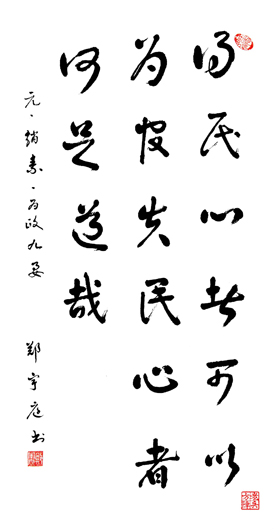 "人生感悟 修身自律,淡泊名利,崇高品德,齐家治国,才能受人尊敬。 ------郑宇庭 "