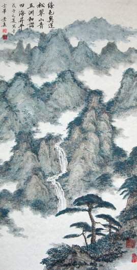 绿色奥运,松翠山青,五洲和谐,四海升平。