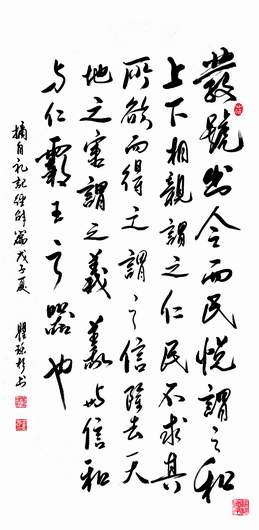发号出令而民说,谓之和。上下相亲,谓之仁。民不求所欲而得之,谓之信。除去天地之害,谓之义。义与信,和与仁,霸王之器也。