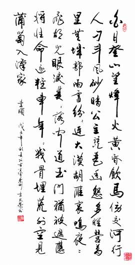 白日登山望烽火,黄昏饮马傍交河。行人刁斗风砂暗,公主瑟琶幽怨多。野营万里无城郭,雨雪纷纷连大漠。胡雁哀鸣夜夜飞,胡儿眼泪双双落。闻道玉门犹被遮,应将性命逐轻车。年年战骨埋荒外,空见蒲萄入汉家。